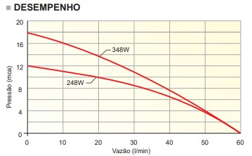 •Pressão máxima 18 mca e Vazão máxima 60 l/m