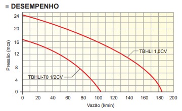•Pressão máxima 16,5 mca e Vazão máxima 103 l/m
